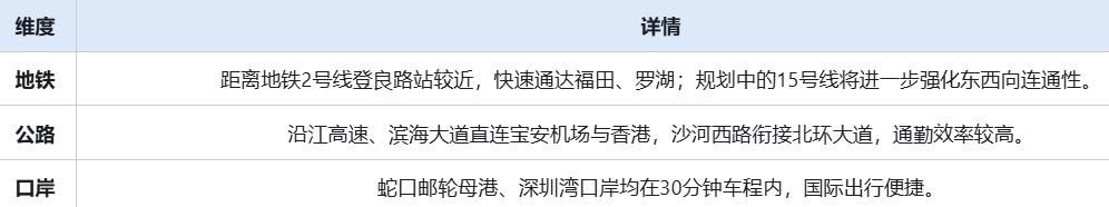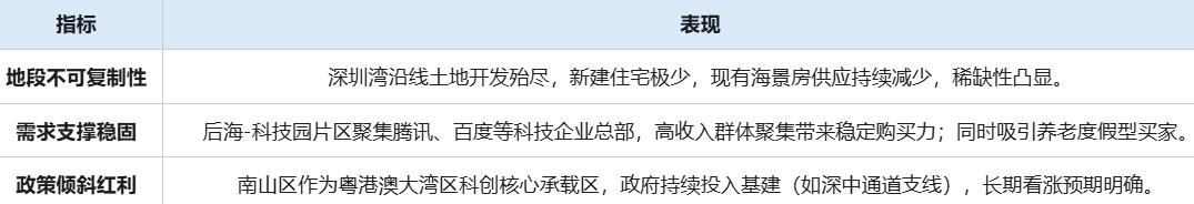 ✔️ 南山核心辐射圈:毗邻深圳湾超级总部基地(后海金融商务区)、前海自贸区,承接高端产业人群居住需求,区域发展潜力强劲