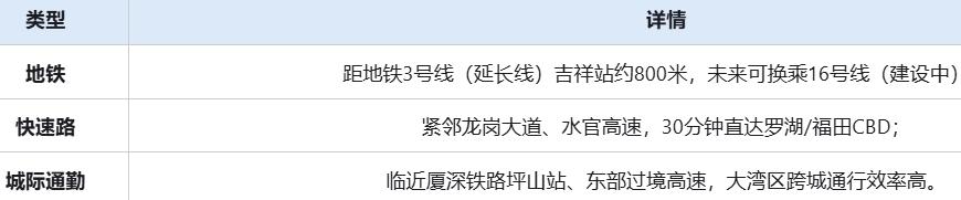🏥 医疗护航:龙岗中心医院、龙岗耳鼻咽喉医院等三甲医院车程均在15分钟内