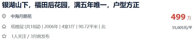 坂田片区比同户型便宜213万的四房:深圳龙岗区中海月朗苑法拍房最新消息